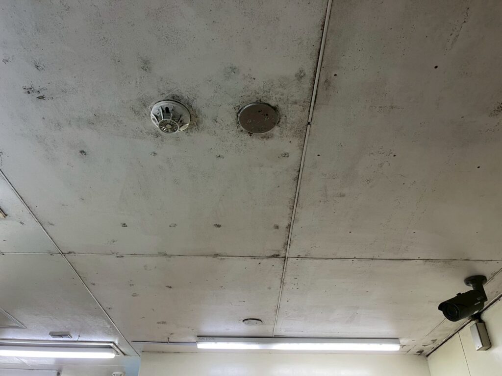 現場確認を行ったところ、天井ボード全体に黒カビが点在し、一部では換気口周辺や配線まわりにも繁殖が見られました。