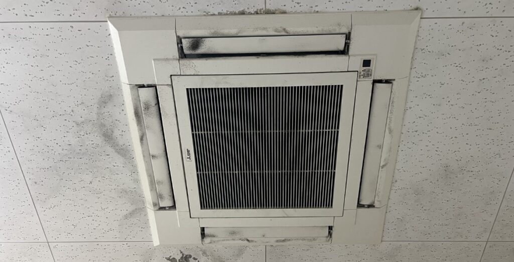 【静岡県】スーパーマーケットのエアコン吹き出し口に発生したカビ除去事例